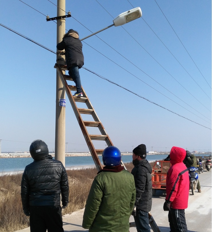 為增添節(jié)日氣氛,亮化場區(qū),機械設(shè)備服務(wù)中心接到場區(qū)及日曬鹽道路路燈維修任務(wù)后,班子成員高度重視,認真組織,積極籌備維修配件,并結(jié)合天氣形勢,對需要修理的60盞路燈,采取分段實施的辦法,于1月25日開始,他們本著安全第一的原則,搶時間爭速度,對日曬鹽道路路燈展開維修工作,繼而對場區(qū)中二圩街道路燈進行維修,職工們不畏嚴(yán)寒,加班加點,到1月31日將全部路燈維修結(jié)束。(圖為修理現(xiàn)場)