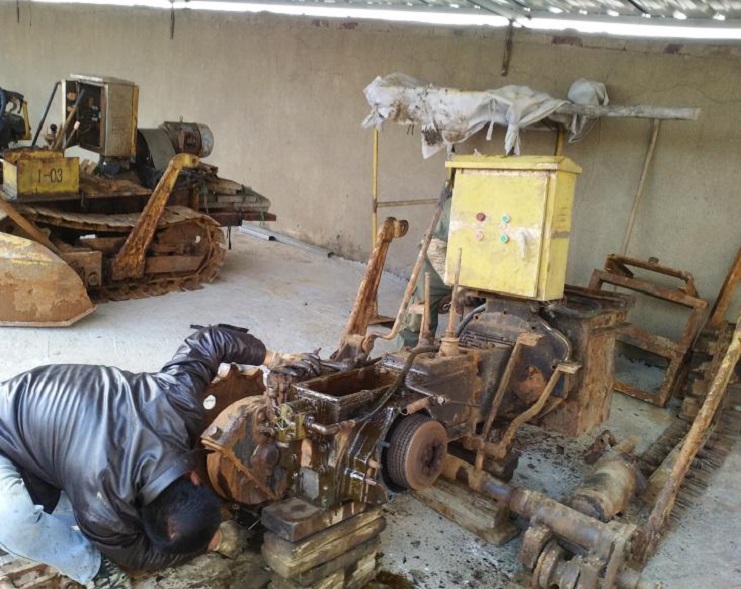 最近,日曬制鹽新河分公司2016年下半年扒鹽工作,接近尾聲,各扒鹽機(jī)組陸續(xù)完成扒鹽任務(wù),機(jī)械先后搬回分公司。該分公司機(jī)電組為了確保來(lái)年扒鹽機(jī)械能夠拿得出,打得響,積極對(duì)回來(lái)的機(jī)械進(jìn)行維修、保養(yǎng);目前,已完成2套機(jī)械的保養(yǎng)工作。(圖為機(jī)電工人正在維修、保養(yǎng)扒鹽機(jī)械)。