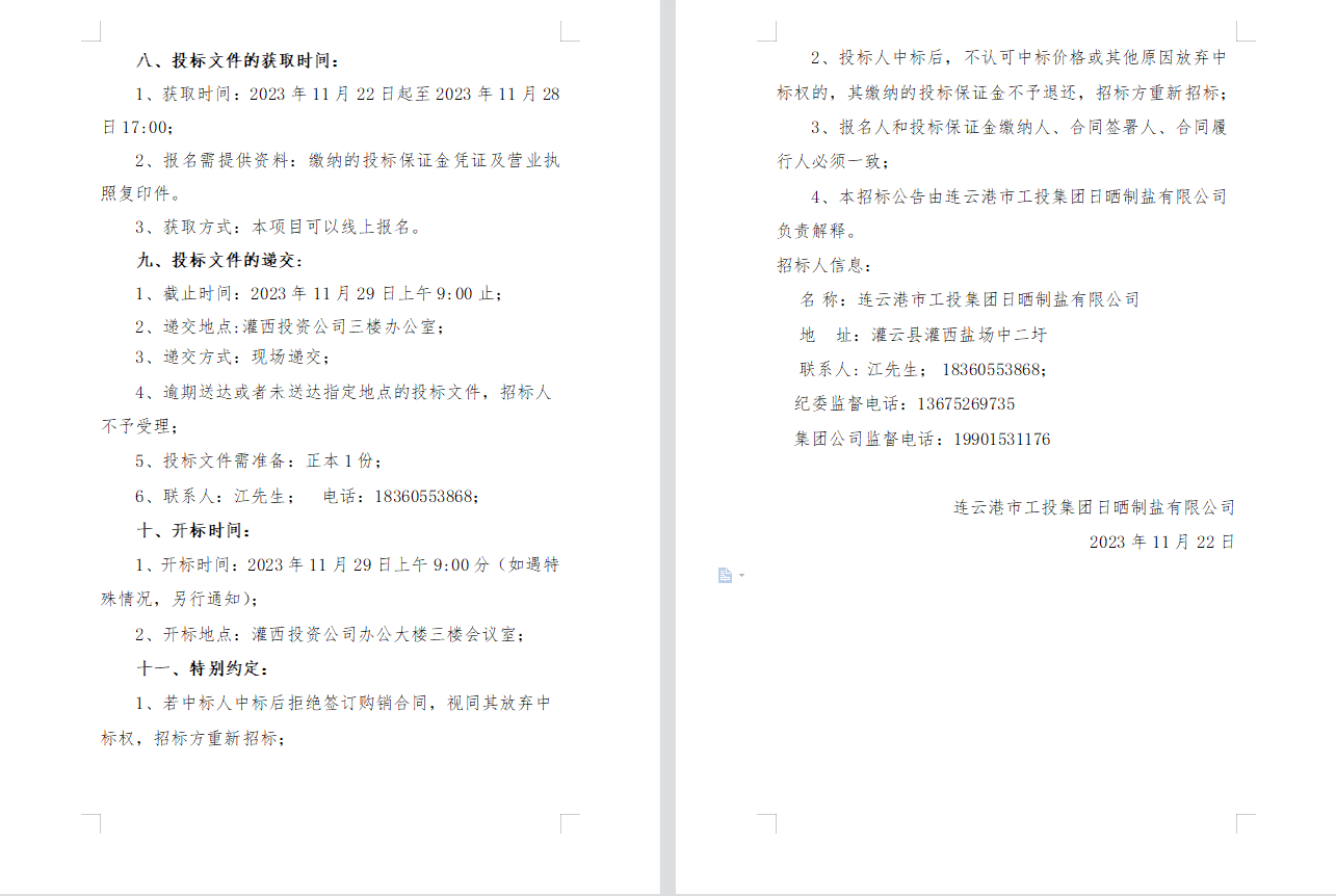 連云港市工投集團(tuán)日曬制鹽有限公司2023年度員工工作服采購(gòu)項(xiàng)目邀請(qǐng)招標(biāo)公告
