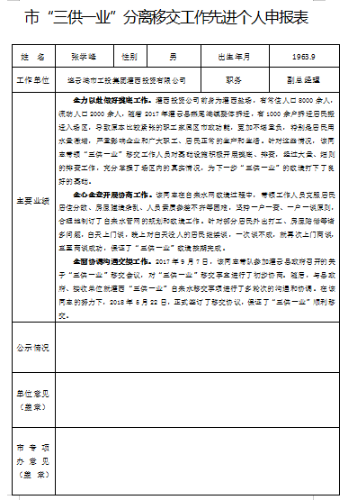 市“三供一業(yè)”分離移交工作先進個人申報表