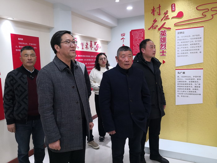 曹開明一行參觀了該村黨員活動(dòng)室、黨史室、村史陳列室,聽取了尹蕩村黨總支書記孫克玉對該村概況的介紹。雙方就黨史學(xué)習(xí)、文明共建和黨建工作開展等方面進(jìn)行了深入的溝通交流。