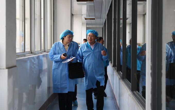 10月15日上午,連云港市市場(chǎng)監(jiān)督管理局食品生產(chǎn)處副處長梁晶晶、顧為民帶領(lǐng)檢查員一行來我公司開展食鹽定點(diǎn)生產(chǎn)企業(yè)日常監(jiān)督檢查和飛行檢查。公司董事長、黨委書記、總經(jīng)理朱桂玉,副總經(jīng)理田磊、何啟明陪同。