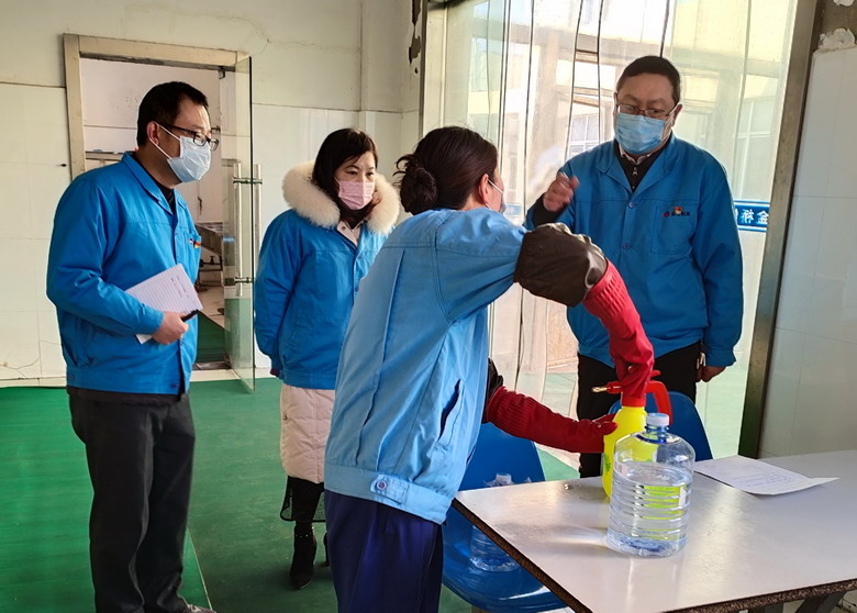復(fù)工生產(chǎn)后,對進廠職工進行體溫測量,確保復(fù)工職工體溫低于37.3℃;要求所有進廠職工必須佩戴口罩,防止交叉感染;統(tǒng)籌安排職工實行分區(qū)域、分時段就餐;每天對廠區(qū)辦公樓、車間、門衛(wèi)室、食堂等區(qū)域進行消毒處理2次,充分做好廠區(qū)衛(wèi)生消毒工作。(金宣)