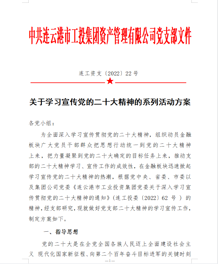 方案和意見提出,為全面深入學習宣傳貫徹黨的二十大精神,組織動員金融板塊廣大黨員干部群眾把思想行動統(tǒng)一到黨的二十大精神上來,把力量凝聚到黨的二十大確定的目標任務(wù)上來,推動支部的二十大精神學習、宣傳工作的成效性,在金融板塊迅速掀起學習宣傳黨的二十大精神的熱潮。