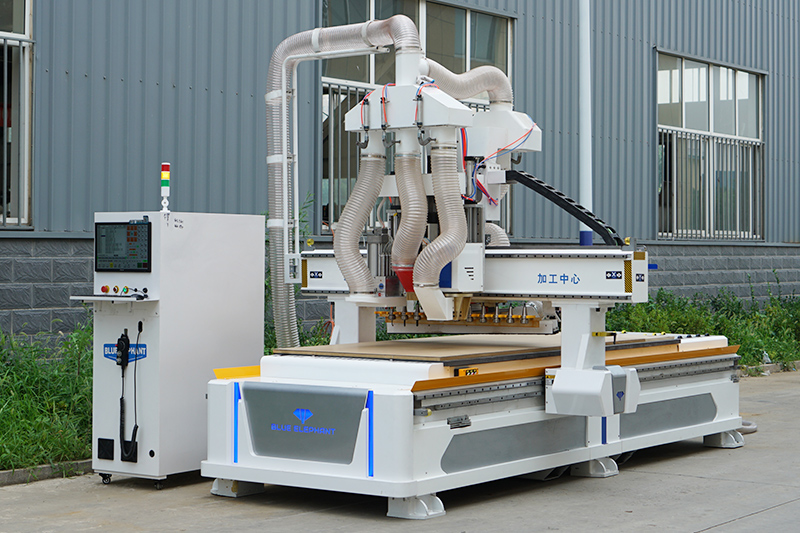 采用HQD自動換刀主軸和大容量刀庫,可以解決各種復(fù)雜生產(chǎn)工序,同時機器還配置了排鉆組和鋸片主軸,能夠解決板式家具三合一、二合一鏈接件所需安裝孔及隱形件所需安裝槽。