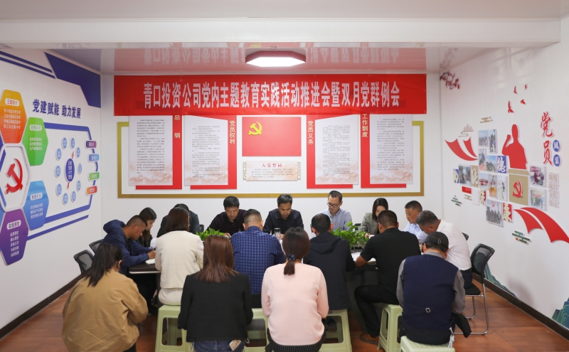 10月9日下午,青口投資公司召開黨內(nèi)主題教育實踐活動推進(jìn)會暨雙月黨群例會,開展黨建現(xiàn)場觀摩,交流工作經(jīng)驗,總結(jié)公司黨建成效成果。公司黨委副書記、工會主席梁永,紀(jì)委書記朱文兵,各支部、分會負(fù)責(zé)人以及黨群各部門人員參加會議。