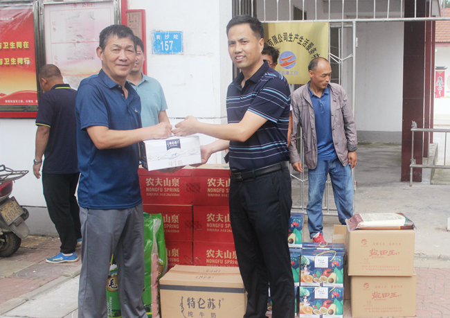 ? ? ? ?7月30日上午,公司領(lǐng)導(dǎo)班子成員分組帶著綠豆、白糖、礦泉水等防暑降溫物品,到各基層單位為職工們送去絲絲清涼和滴滴關(guān)愛。在慰問現(xiàn)場,領(lǐng)導(dǎo)們親自為一線職工送上降溫物品,并叮囑他們要提高自我保護(hù)意識(shí)和安全防范能力,合理安排工作時(shí)間,注意防暑休息。