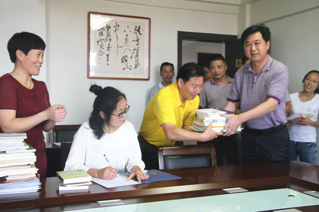 8月16日上午,青口投資公司機(jī)關(guān)支部舉行圖書(shū)捐贈(zèng)活動(dòng),公司董事長(zhǎng)、黨委書(shū)記胡傳法帶頭捐贈(zèng)圖書(shū)十二本。