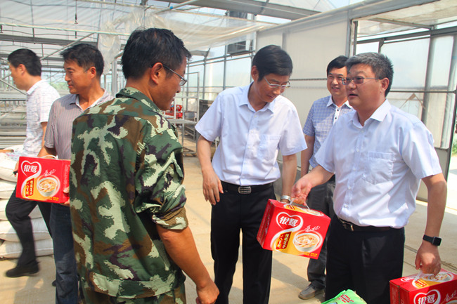 7月20日上午,集團(tuán)副總經(jīng)理張其海、總會(huì)計(jì)師匡友本來我公司大新農(nóng)場(chǎng)、生態(tài)種養(yǎng)中心走訪慰問拼搏在農(nóng)業(yè)種養(yǎng)一線的基層職工,為他們送上綠豆、白糖、牛奶及八寶粥等防暑降溫品。投資公司董事長(zhǎng)、黨委書記胡傳法、黨委副書記、副總經(jīng)理史祥平、副總經(jīng)理周緒祥陪同慰問。