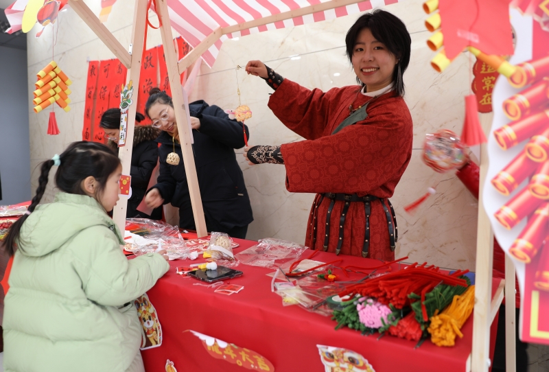 剪窗花、寫對(duì)聯(lián),是迎接新年必不可少的傳統(tǒng)習(xí)俗,承載了我們對(duì)新一年的美好期望。在傳統(tǒng)民俗區(qū),大家沉浸式體驗(yàn)這些傳統(tǒng)習(xí)俗,有的揮毫潑墨,“寫春送?!保械募艏埣那椋舫龈鞣N各樣象征生肖、團(tuán)圓、吉祥的窗花,不一會(huì)兒,一幅幅滿載新年祝福的春聯(lián),一張張年味濃濃的窗花,就展現(xiàn)在大家面前。
