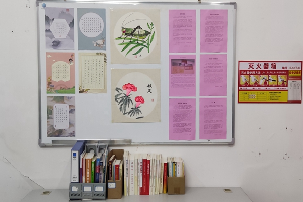 走進(jìn)我們的物檢室,這是熟悉的不能再熟悉的地方,一進(jìn)門,一個(gè)小小的變化就驚訝到我了,眼前一亮。原來在我的強(qiáng)力機(jī)前面的墻上掛著一個(gè)白板,白板上貼著我們部門員工的各種作品,分為三塊,左邊是五張?zhí)圃姇ǎ疫吺枪揪W(wǎng)站登出的六篇文章,中間則是我們部門才女張?jiān)频膬煞?,特別是橘紅色那一抹,使得整個(gè)版面亮起來了。真不知道我們的才女怎么那么有才的?