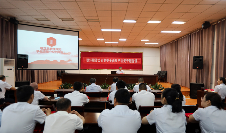 ? ? ? 會上,投資公司黨委書記、董事長、總經(jīng)理莊清付以《強(qiáng)化紀(jì)律規(guī)矩、提高執(zhí)行能力》為題,給與會人員上了一堂全面從嚴(yán)治黨專題黨課。