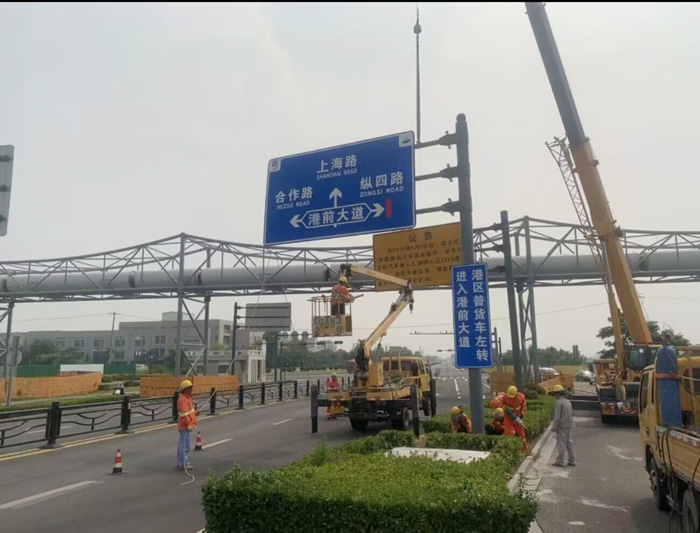 從5月起,市政分公司已著手15座標(biāo)志牌基座澆筑工作,7月初,完成了基礎(chǔ)養(yǎng)護(hù)期,達(dá)到安裝條件。因前階段準(zhǔn)備工作到位,為此次標(biāo)志牌安裝作業(yè)順利完成奠定了堅(jiān)實(shí)的基礎(chǔ)。本次施工的道路包括港前大道、蘇海路、徐新路等8條道路,共拆除、安裝大型標(biāo)志牌15套,工程收入約十萬(wàn)元。