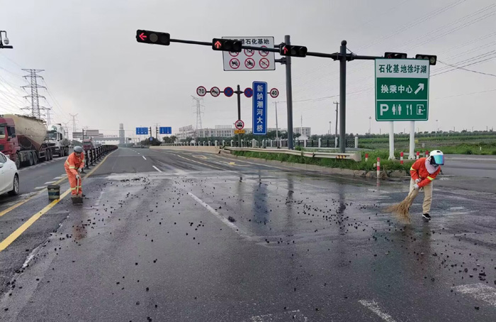 為及時快速排除道路突發(fā)障礙,保障路面車輛行人安全暢通,保潔勇士無懼高溫炎熱天氣,快速高效清理路面車輛拋灑,工作中用汗水彰顯責任與擔當。