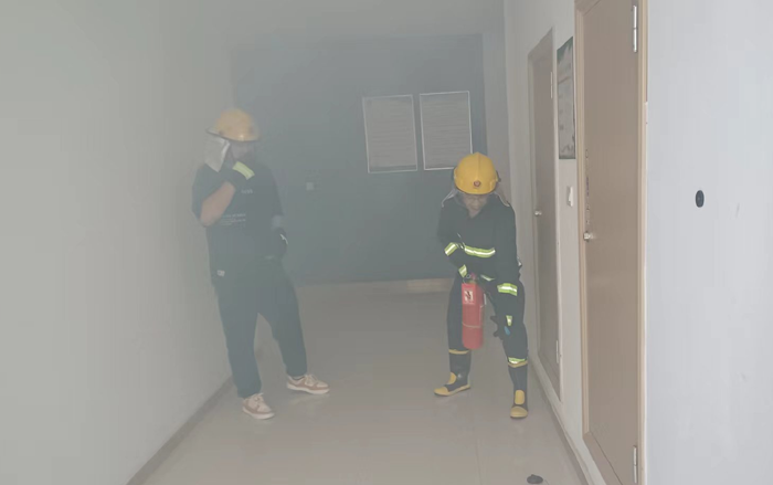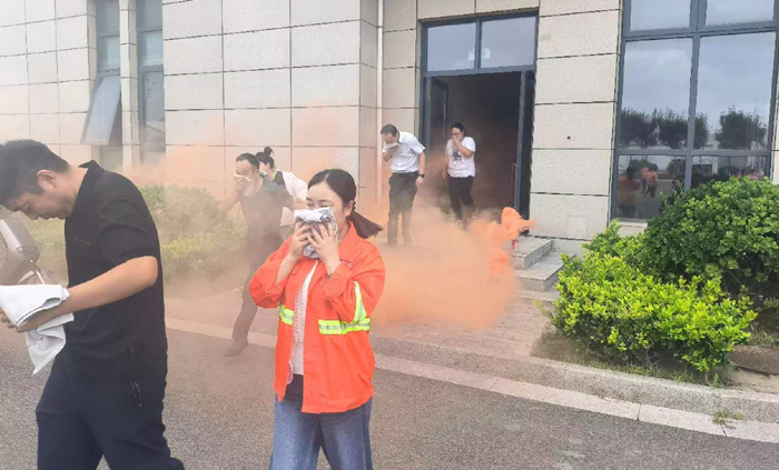 本次演練模擬公司辦公樓三樓電纜井因電路故障引發(fā)火情組織職工開展應急疏散。 “起火啦!”15時許,辦公樓三樓一電纜井內突然涌出滾滾濃煙。臨近人員發(fā)現(xiàn)著火后,第一時間使用滅火器進行撲救。濃煙觸發(fā)自動報警裝置,消防控制室值班人員接到警報后,立即通知志愿消防隊伍趕赴現(xiàn)場撲救,并撥打報警電話,向應急指揮部報告。公司應急指揮部立即啟動應急預案,滅火搶救組、安全救護組、緊急疏散組等應急小組隨即到位,有條不紊開展滅火、疏散等工作。消防救援隊伍到達現(xiàn)場后,接過現(xiàn)場指揮權,開展滅火救援。安全搶救組搜索受傷人員,并對受傷人員簡單急救后送往醫(yī)院進行治療,緊急疏散組立即組織辦公大樓人員,用濕毛巾捂住口鼻從應急通道撤離。10分鐘后,險情排除,應急救援結束。最后,組織部分人員開展滅火實操演練